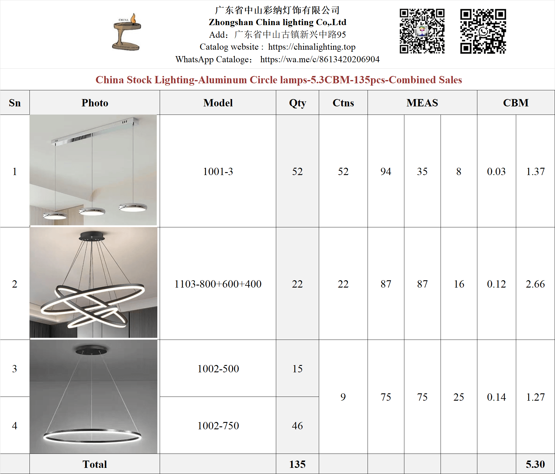 China Stock Lighting-Aluminum Circle lamps-5.3CBM-135pcs-Combined Sales