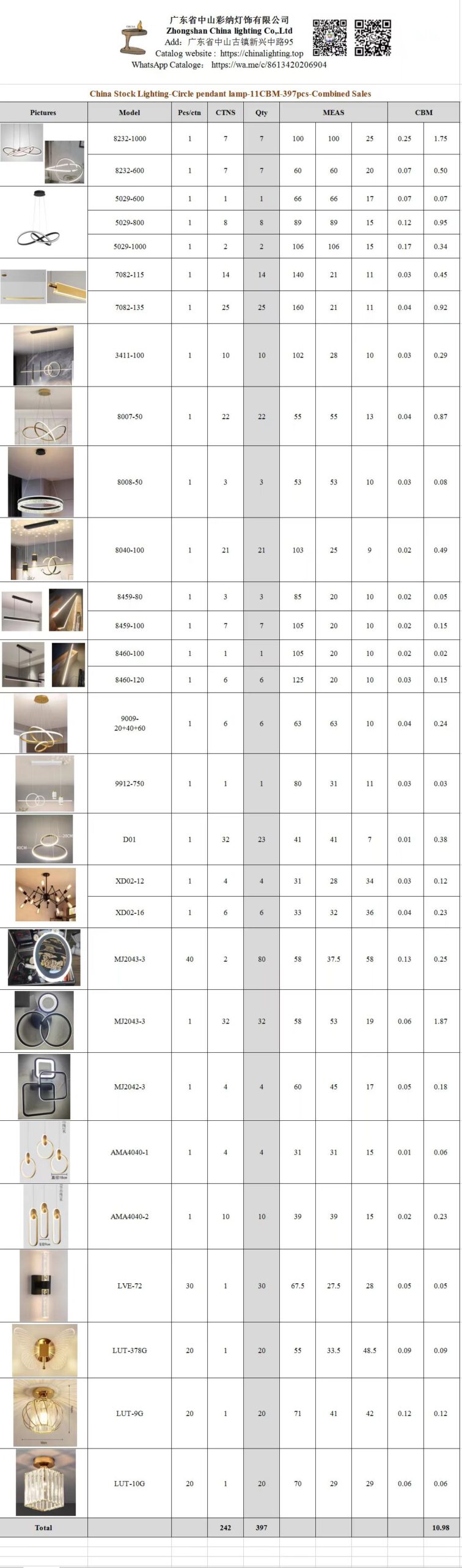 China Stock Lighting-Circle pendant lamp-11CBM-397pcs-Combined Sales