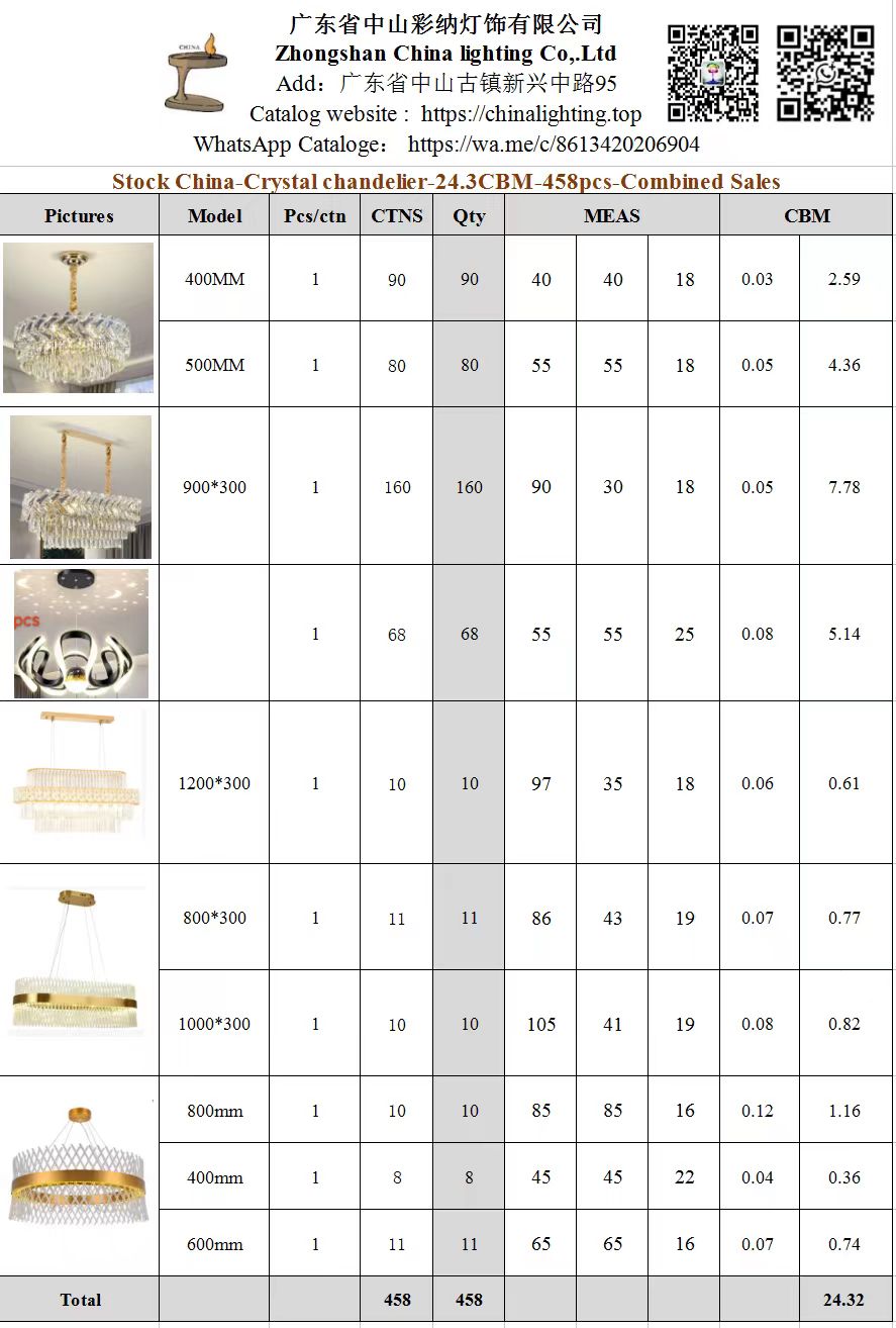 Stock China-Crystal chandelier-24.3CBM-458pcs-Combined Sales