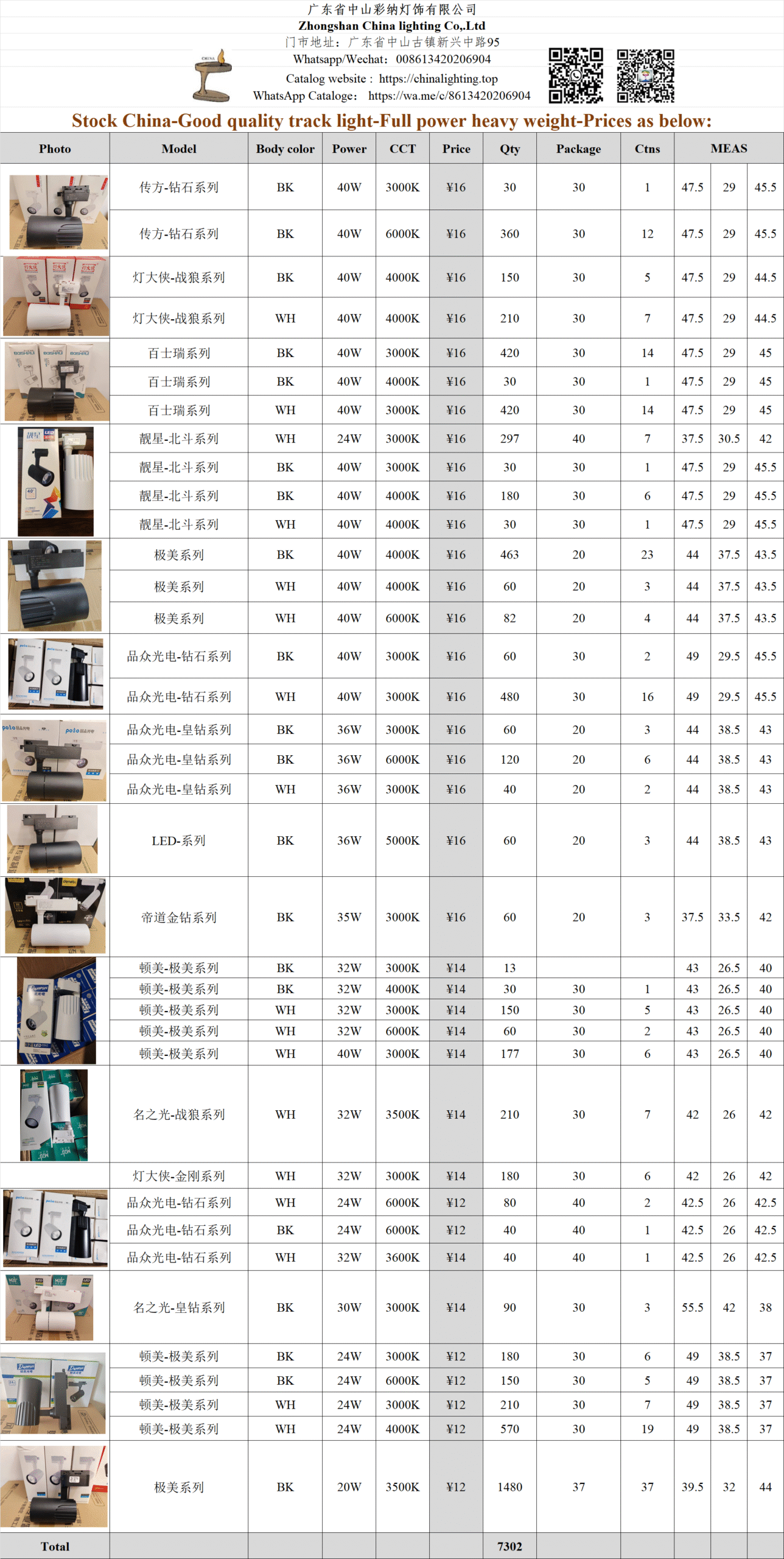 Stock China-Good quality track light-Full power heavy weight-Prices as below: