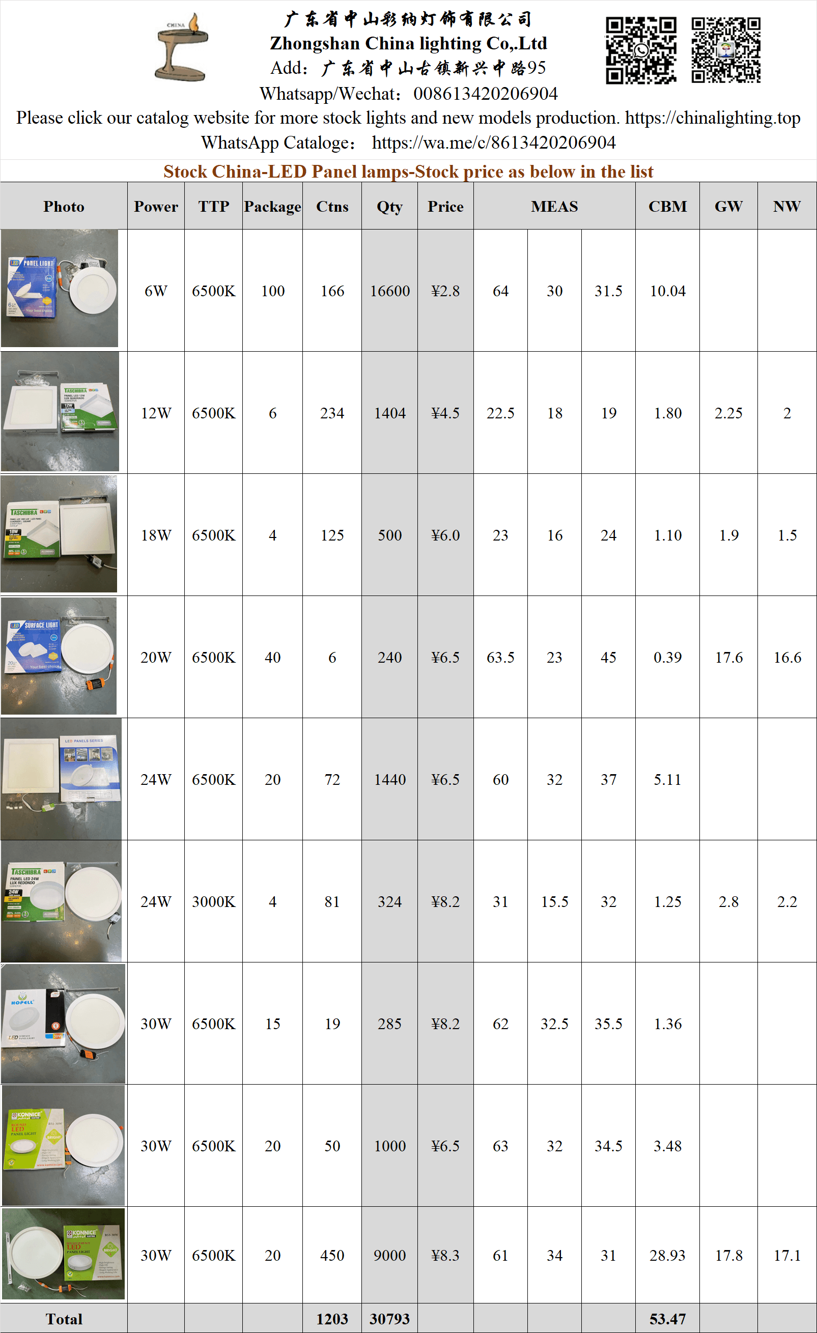 Stock China-LED Panel lamps-Stock price as below in the list