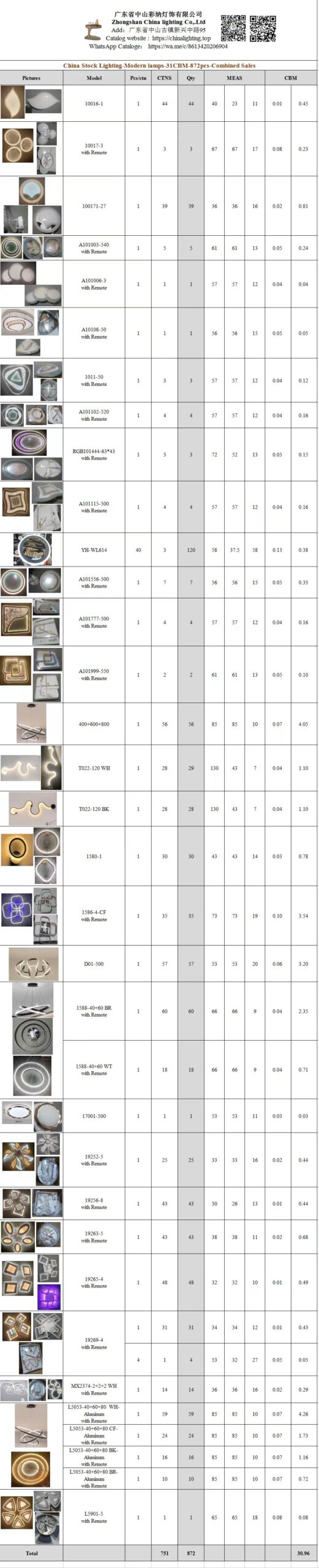 China Stock Lighting-Modern lamps-31CBM-872pcs-Combined Sales