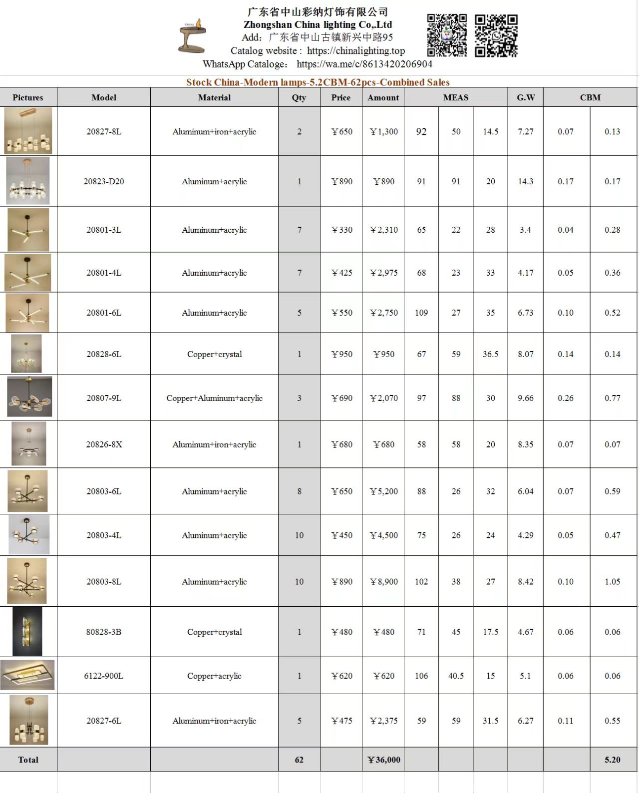 Stock China-Modern lamps-5.2CBM-62pcs-Combined Sales