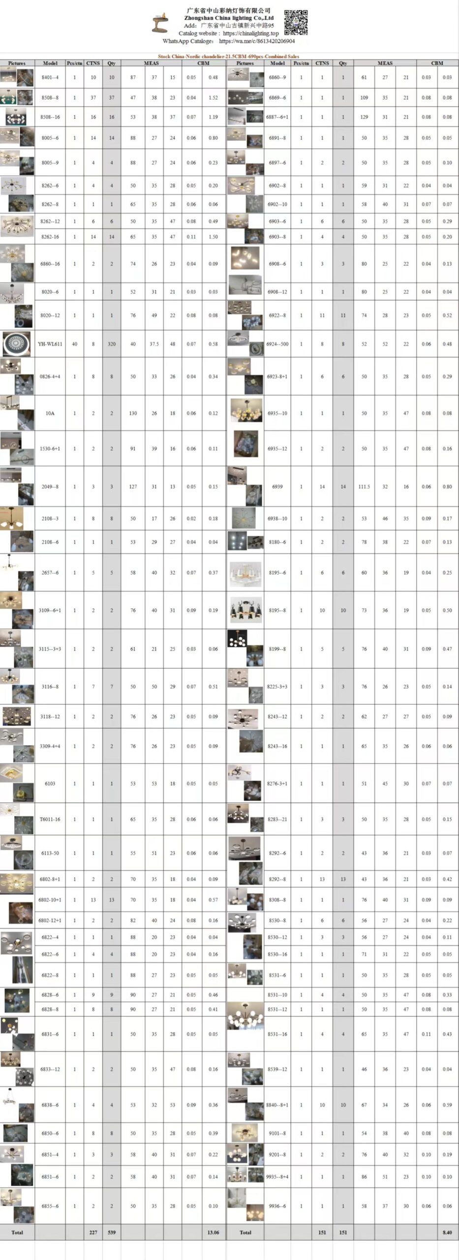 Stock China-Nordic chandelier-21.5CBM-690pcs-Combined Sales