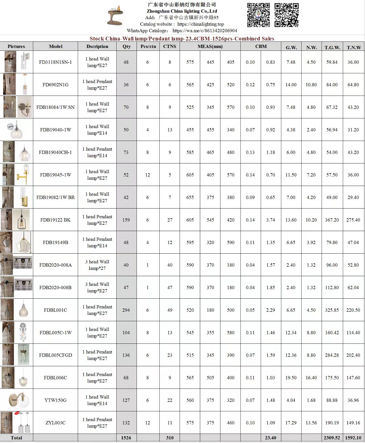 Stock China-Wall lamp/Pendant lamp-23.4CBM-1526pcs-Combined Sales